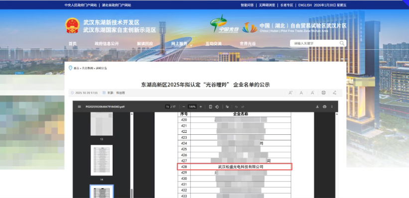 " />近日武漢東湖高新區開展了2025年度“光谷瞪羚”企業認定工作。武漢松盛光電科技有限公司憑借深厚的技術實力及行業影響力,成功入選。