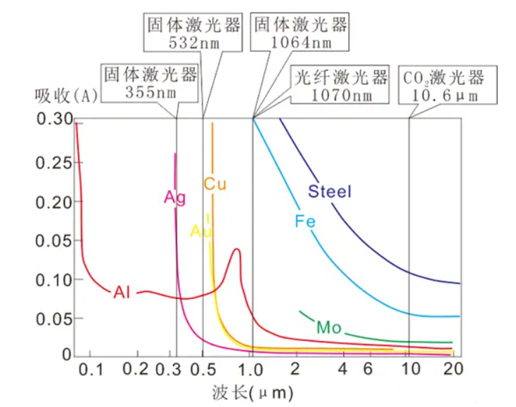 波長不僅決定了激光的“身份”,更關鍵的是決定了不同材料對它的吸收率。