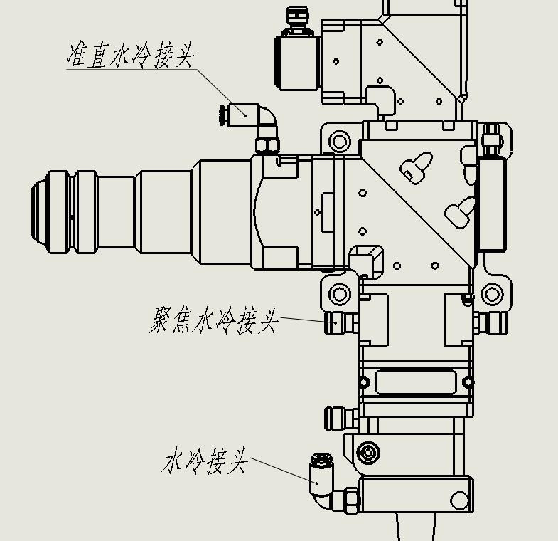 水冷固定板上,有進水口和出水口。建議功率高于1000瓦時,啟用水冷裝置。此外,本系列切割頭功率不能大于2000瓦。管道結構請參考圖4。