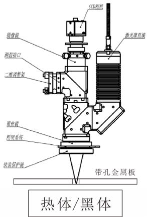 1. 將黑體放在測溫頭的正下方,加熱面的位置在激光鏡頭的焦點處,將帶孔金屬名片的孔位與激光點重合,注意,帶孔的金屬名片要和熱源之間有間隙,目的是阻擋檢測點以外的雜光,同時避免金屬片被加熱后造成測溫不準。